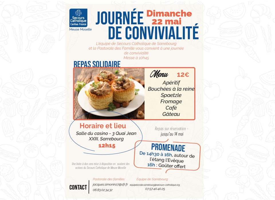 L'équipe du Secours Catholique de Sarrebourg et la Pastorale des familles vous convient à une journée de convivialité,